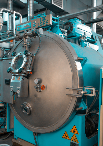 Thanks to investments in specialized new-generation dyeing and washing machines, we have significantly increased the efficiency of our processes. We are able to increase production batches without increasing the amount of water and chemicals used in the technological bath. This is a real saving that translates into a smaller ecological footprint for your collection.